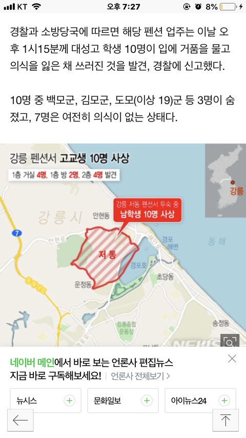 헐 어떡해 고3들 놀러갔다가 죽엇대