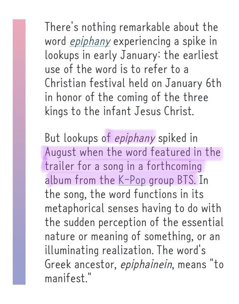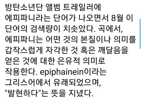 방탄 수록곡 에피파니 미국 사전에서 올해의단어 선정