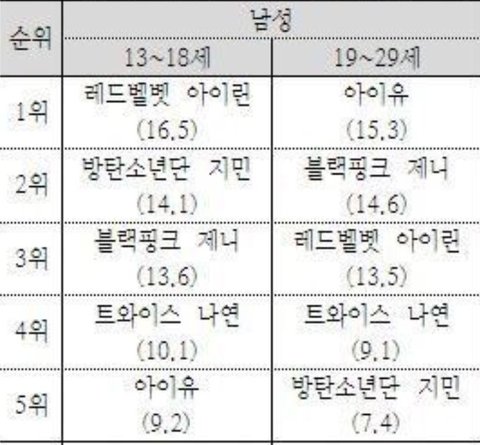 남돌 여돌 통틀어 1위인것도 좋은데 남성들이 뽑은 순위
