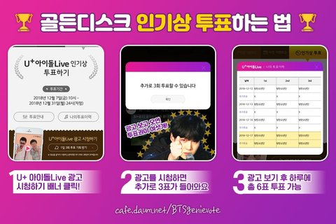 ( 기본 1일 3회 투표권 지급 + 광고 시청 후 3표 추가 지급 )