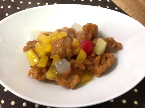 제 방식대로 칵테일 과일을 넣은 과일탕수육과 칠리새우를 만들었습니다.