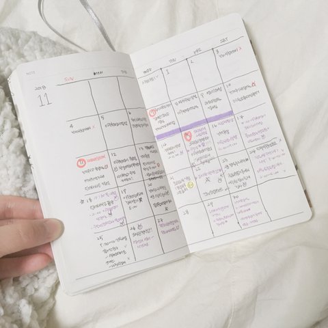 난 그냥 일단 펜은 검정색이랑 보라색!! 요즘 보라색 너무 좋더라ㅠㅠㅠㅠ 공부할때나 필기할때도 예뻐 얘두라 다들 보라색 써 꼭.. 그리고 하이라이터 노란색, 연보라, 청색 이케 세개 젤 좋아해! 연보라 하이라이터랑 보라색 펜쓰면 진짜 환상의 저합이야ㅠㅠ 스티커나 마스킹테이프는 일절 안써 나중에 귀찮아서 다이어리를 안쓰게 되더라ㅠㅠ