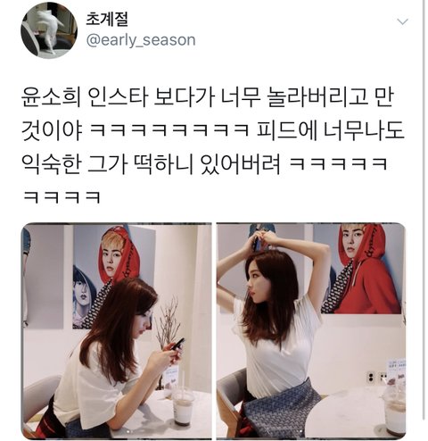 여배우 윤소희님 인스타에 빨간망토 고앵이로 유명한 보그 시우민사진이 똬악!!!