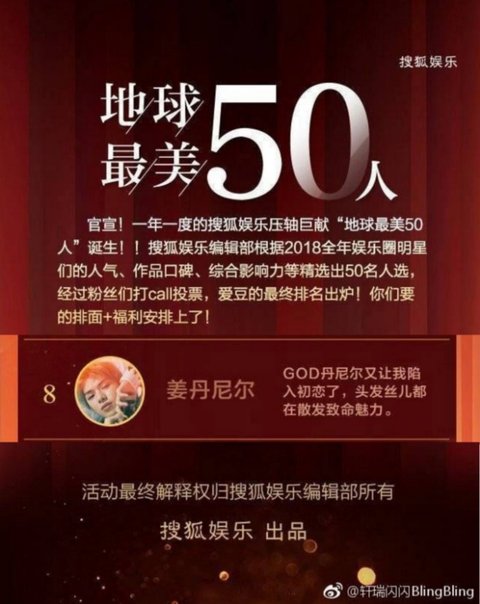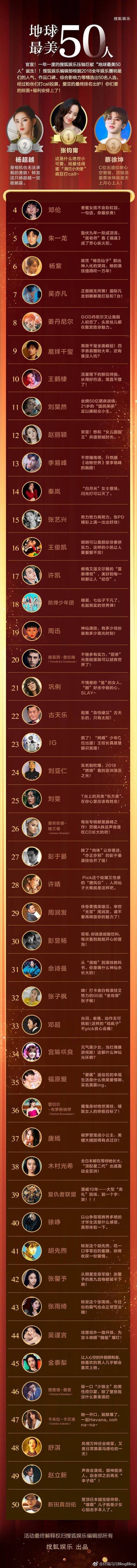 올해 스타들의 인기+작품평판+종합영향력으로 최종 50인 선정, 팬투표에 의해 최종 순위도 나옴