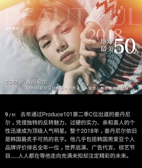 작년 프로듀스101 시즌2를 통해 데뷔한 강다니엘은 독특한 반전매력과 실력 친화력있고 애교있는 성격으로 급속히 탑스타 대열에 올랐다. 2018년 강다니엘은 여전히 한국에서 가장 핫한 이름 중에 하나다.거의 모든 남돌 개인브랜드 평판 1위 타이틀을 얻었으며 월투,광고,예능 모든이들이 그가 아직 미지의 단계이지만 반드시 화려한 미래로 향하는 걸 기대하는 중이다.