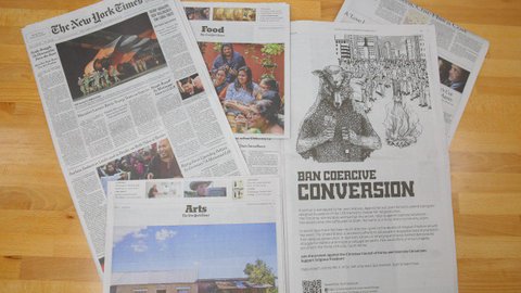 시민들은 자발적인 후원으로 강제개종의 심각성을 인식하는 미국의 유명 일간지를 통해 강제개종의 현황을 알리고 그 근절 대책에 동참해줄 것을 호소했다.