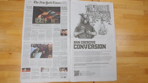 최근 뉴욕타임즈에 실린 ‘강제개종 금지’ 광고 내용을 기사화했다고
