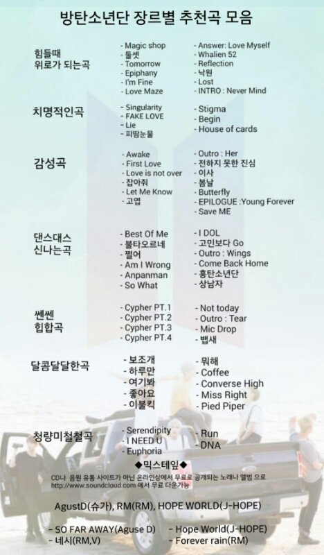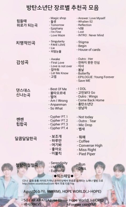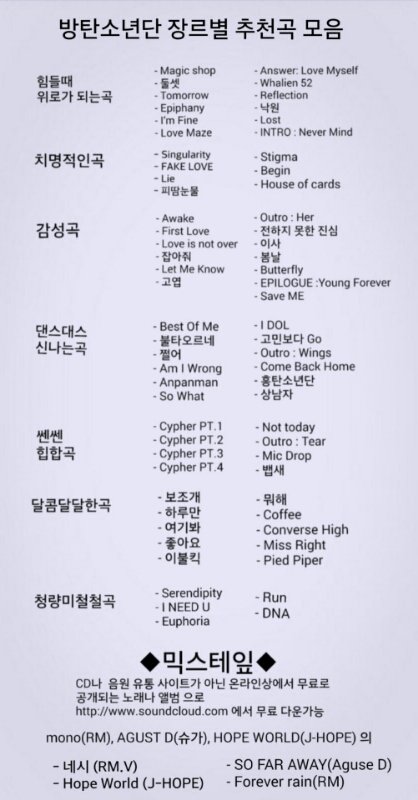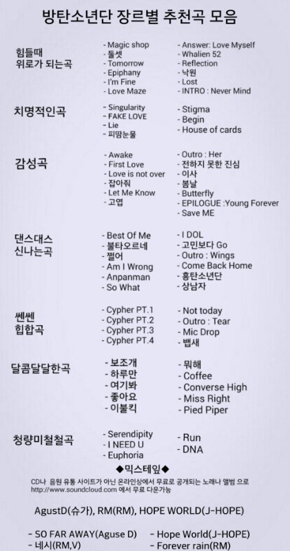 부분별 곡선택은 다들 의견이 많이달라 어떻게 할수가 없었어.ㅠ 곡들 대부분이 이짝 저짝 많이 왔다리 갔다리 하다가 나온거니 조금만 이해 해주랑..