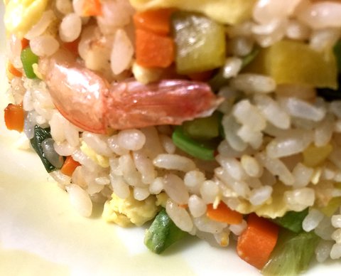 오늘은 750원에 산 햇반으로 새우볶음밥을 만들었어요.