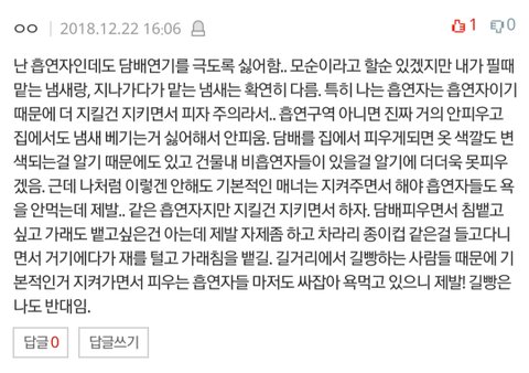 어이가 없네요, 담배 피우면서 걸어가는 것도 비매너 당신들에겐