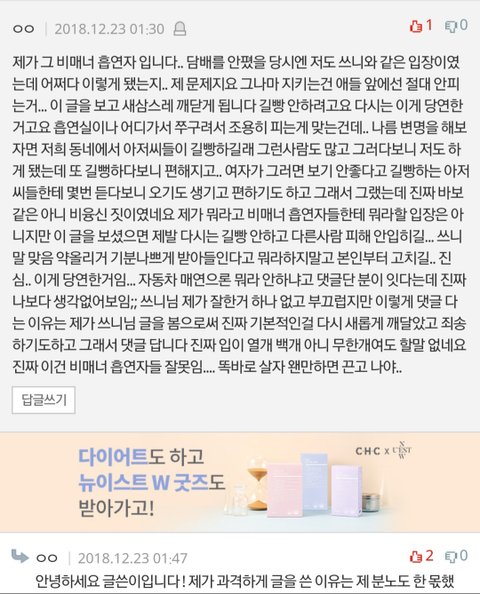 첫줄에 뭐라고 적어놨냐, 비매너 흡연자라 그랬지?