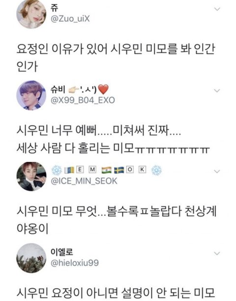 닝겐들이여! 천상계의 미모와 요정력 세젤 귀여움과 섹시함 잘생김을 모두 갖춘 시우민하세요!!!