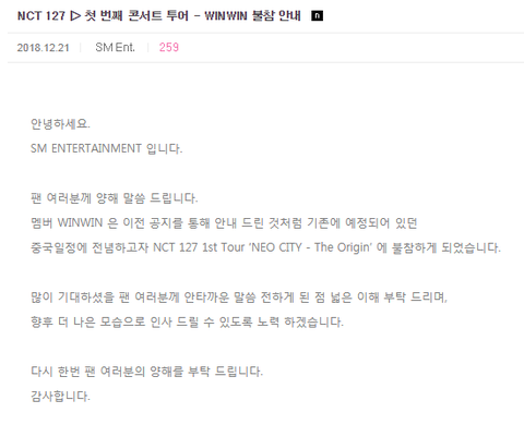 윈윈이 불참...