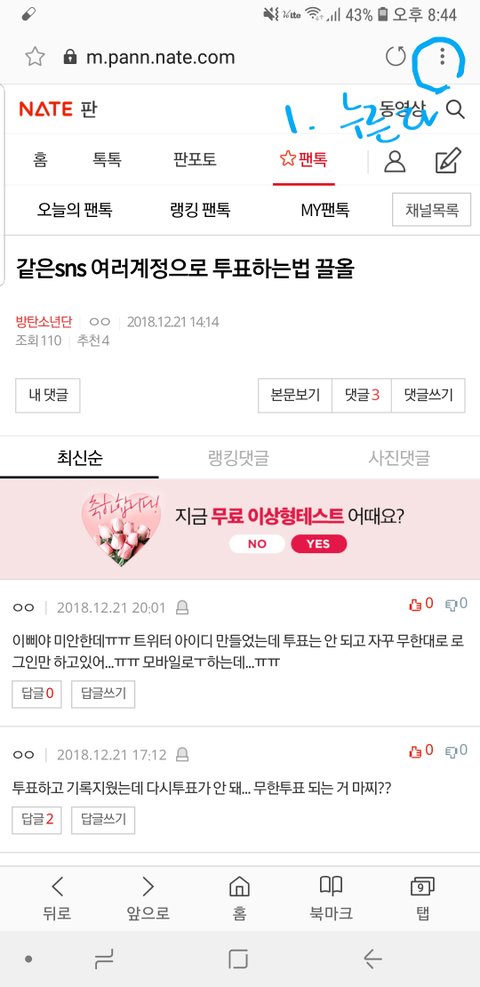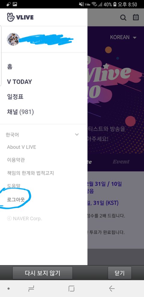인터넷 브이앱 창가서 투표하기 누르면 처음 로그인 창 뜬다