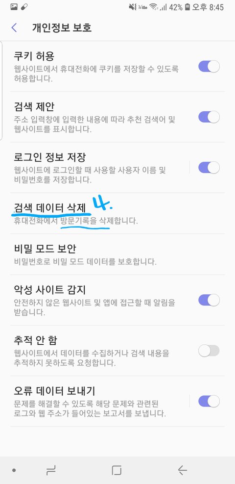 이제 방문기록 삭제 방법 알려줄게(참고로 갤노.트8이야)