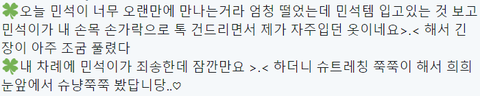 진짜 염소같은 목소리로 노래 불렀는데 민석이가 내 노래에 맞춰서 나비소녀 안무 해줬다ㅠ 진짜이뻤어ㅜㅜ 나비요정 시우민