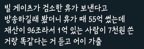 3418억짜리 호화요트를 일주일(51억) 빌리고 이태리에서 휴가 총 재산에서 휴가비가 차지하는 비율은 0.00729% 10억을 가진 사람이 1주일 휴가비로 72973원 지출한 셈