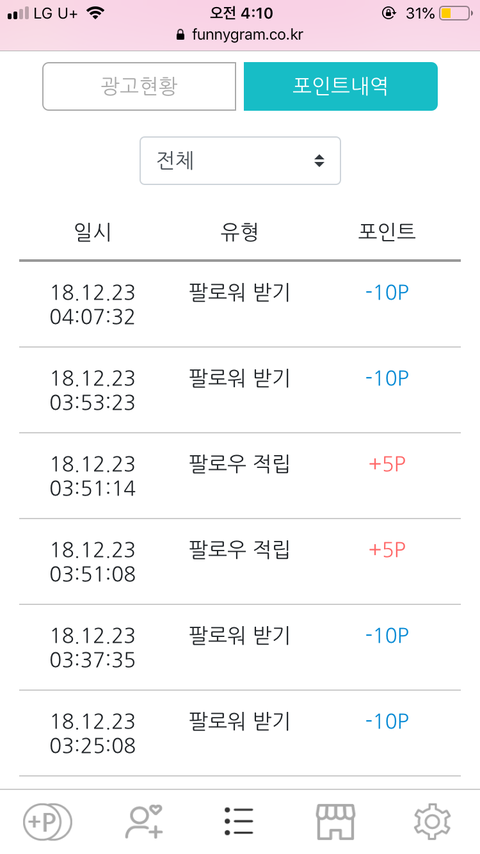 4.10포인트로 팔로우 한명 2포인트로 좋아요 한개 늘릴 수 있음
