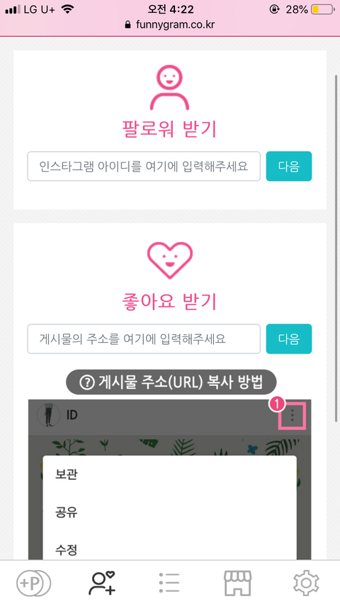 아래 사진처럼 팔로우를 늘릴지 좋아요 받을지 선택할 수 있음
