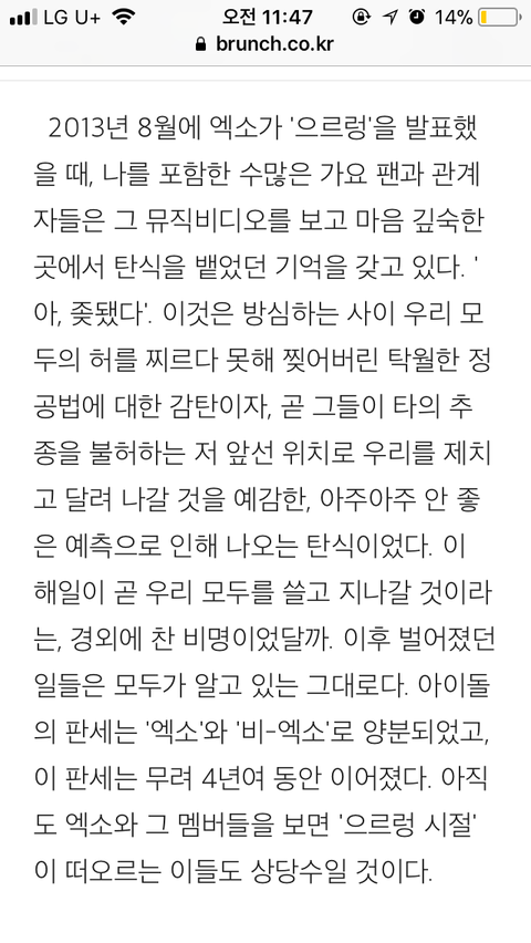 슈윙키주 칼럼? 같은거 쓴사람이 엑소 표현했는데 재밌다