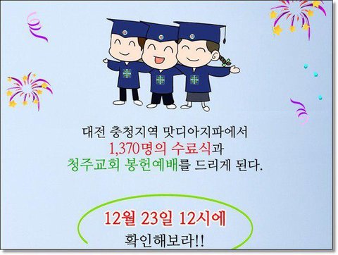 2018년도 이제 얼마남지 않았네요.한해를 마무리하는 12월에 정말 많은 모임과 행사가 많은데요.그 중에 이웃님들께 한해를 마무리하는 아주 멋진 행사를 소개할까 합니다.성탄절을 앞두고 맛이다지파에서 무려 1737명의 수료식이 있다고 합니다.더 놀라운 것은 수료 대기 인원이 20,000명이 된다고 합니다.