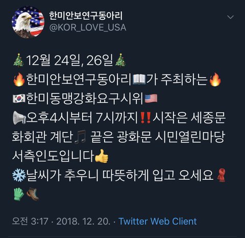 그래서 찾아봤는데 정치적 언급 없는 친미시위가 하나 있더라고요