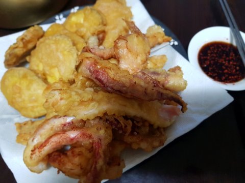오징어튀김 오징어물기빼고 튀김가루묻혀준다음에 반죽할때 튀김가루6 식용유2. 나머지물로 반죽되직하게해서 튀겨보세요~참고로 튀김기없어요ㅜ 팬에다가 식용유 깔릴정도만부어서 다튀기고나면 기름 거의안남게해요~