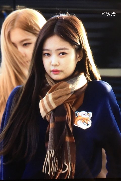 머플러 심플하게 한 오늘자 제니