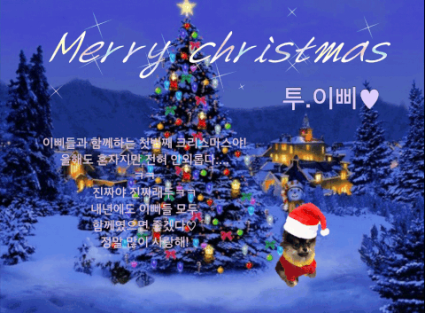 메리크리스마스 이삐♡ 하이퍼 고마웡.덕분에 편하게 탄이들 보고왔네. 나도 클스마스카드 만들었는데...요기 뿌릴께.(늘 그렇듯이 오타 있을지도 몰라ㅋ 얼마나 덜렁되는지 짤 만들때도 글자 빼먹고 오타나고ㅠ 방금도 완성본 아니고 중간꺼 올려서는 놀라서 딥따 지우고 다시 씀ㅋㅋ)