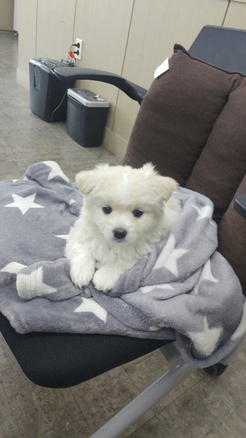 첫날 추위에 벌벌떨고 있는 강아지 데려온날이에요