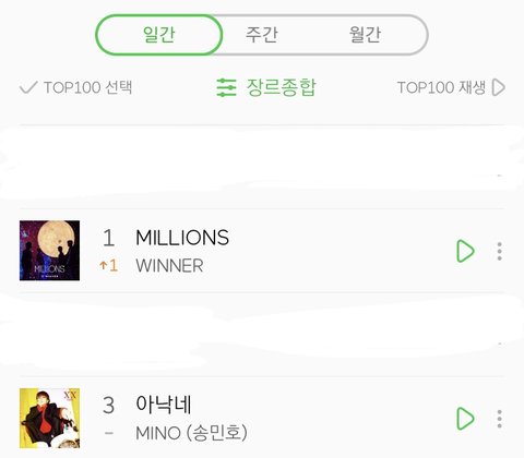 일간 순위 위너가 올라오면 송민호가 내려감