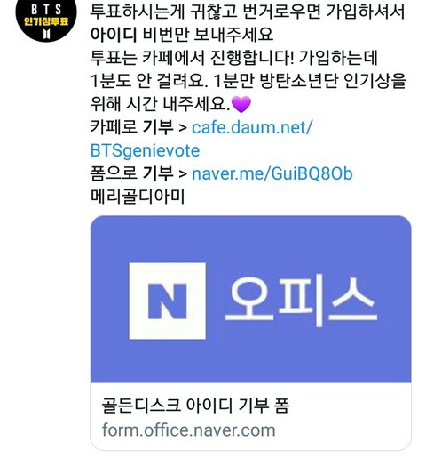 (가능하면 칭구들한테도 투표 부탁해줘 아뒤기부하거나)