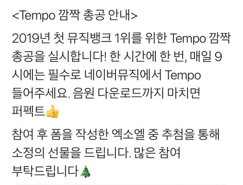 [ 음악은행 2019 첫 1위를 템포에게 안겨주기 위한 총공 안내 ]
