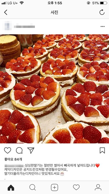 그런데 통화이후에 딸기를 더 주고싶어서 디자인을 변경한거라는둥 이해가 안되는 이러한 인스타를 올리셨길래(현재는 삭제되었음) 저도 열받아서 너무 실망했다. 내 주변에서도 너무한다고들 했다 하고 댓글쓰니 자기 주변은 다 예쁘다고 했다면서 자기 의도는 그게아닌데 화났다면 미안하다는 사과같지도 않은 사과나 해서 더 짜쯩나더라구요...같은 디자인으로 딸기를 더 줄수 있는 방법이 없는것도 아니고..작업공수 줄이려는 디자인이 눈에 딱 보이는 정돈데 계속 변명만 해서 너무 실망했어요.맛이있으면 뭐하나요 기본적인 판매자와 구매자의 약속조차 지키지 못하시는데요...