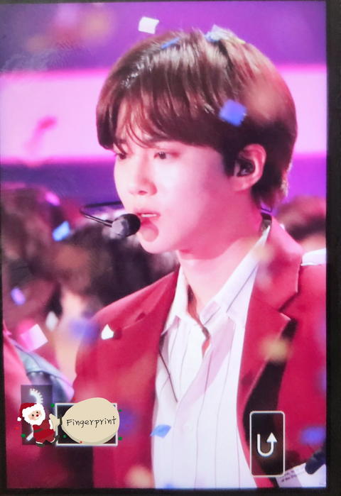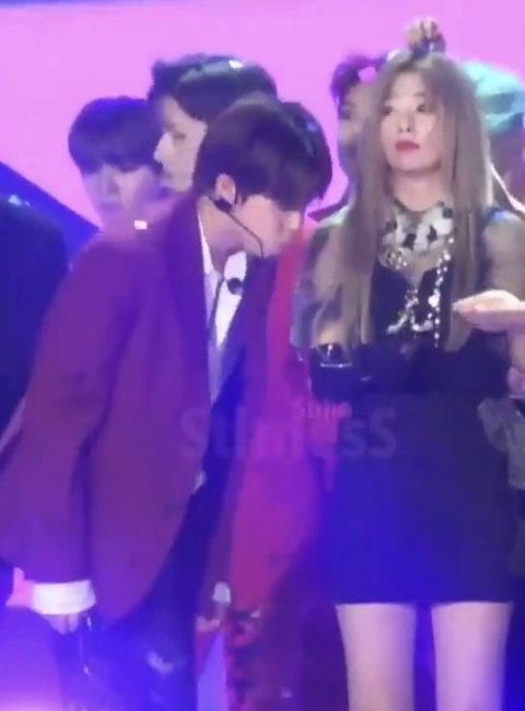 가요대전 엔딩때 일부러 슬기에게 다가가서 슬기 손바닥의 꽃가루 불고 깜짝 놀란 슬기 당황