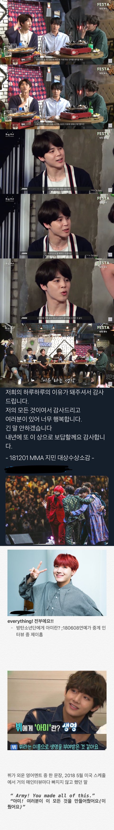 하는 생각이 들고부터 올해초부터 방탄소년단이 아미에게 했던 수많은 진심들이 막 시도때도 없이 떠오르더라