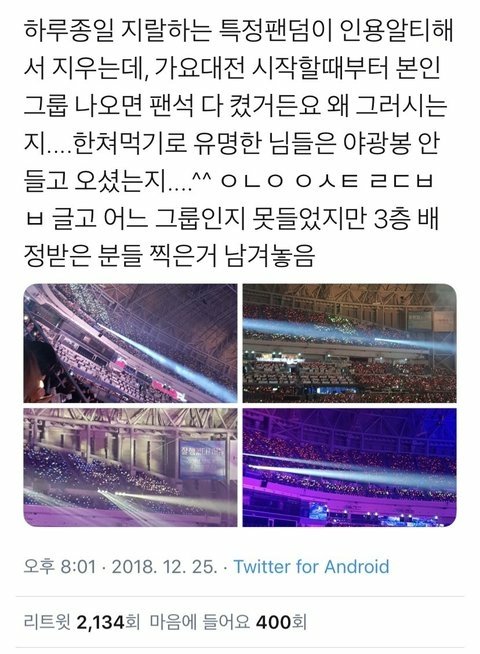 현장 간 사람들 사진 영상 찾아보면 자기 본진 때 응원봉 안 킨 팬덤 찾는게 더 힘든 것 같던데ㅋㅋㅋ