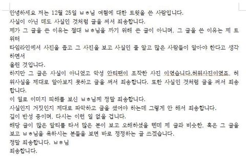 좋다고 까다가 주작인거 알고도 웅앵웅 하더니 사과문썼네ㅋㅋㅋㅋㅋㅉㅉ