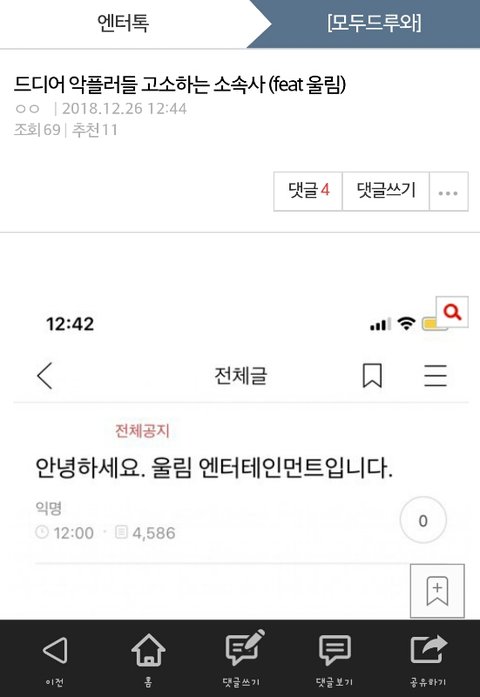 톡선 올려서 경각심도 일으키고 악플 한번이라도 달았던 사람들 찔리라고 울림 고소,피드백 안하는 소속사로 유명하잖아?