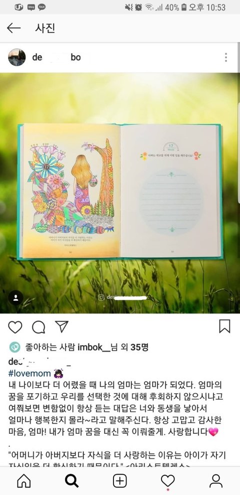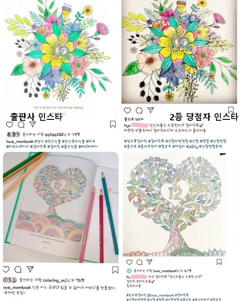 왼쪽은 출판사계정에 관리담당자가 본인이 컬러링 중이라고 올린 계시물이고