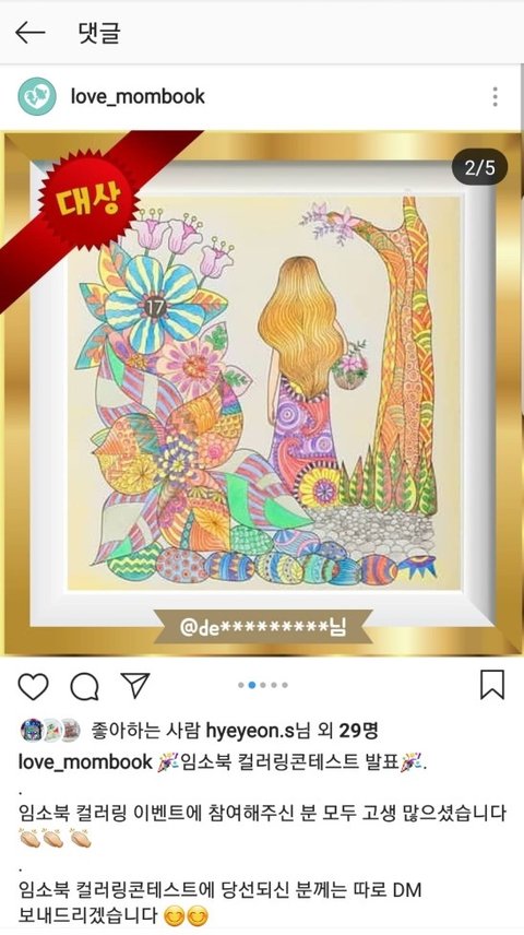 이렇게 상금까지 걸린 이벤트는 처음이여서 컬러링 하시는 분들이 다수 참여를 했고