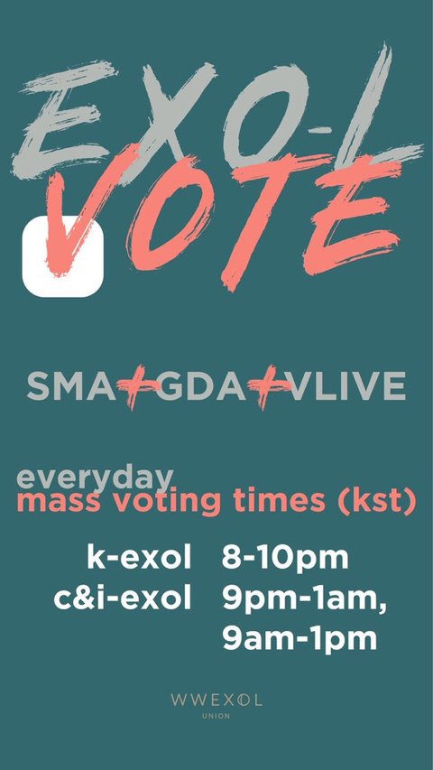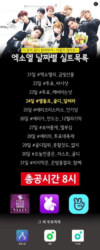 오늘부터 해외 엑소엘이랑 투표 경쟁함!! 석아대+꼴디+쁴앱 인증!!! 많이 참여하자