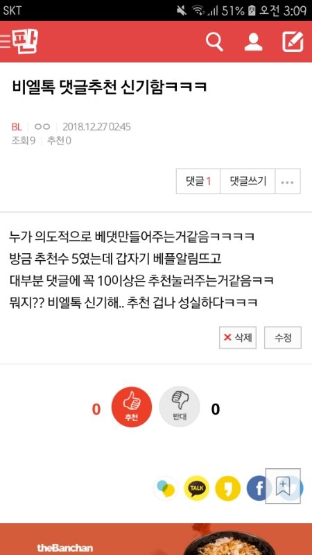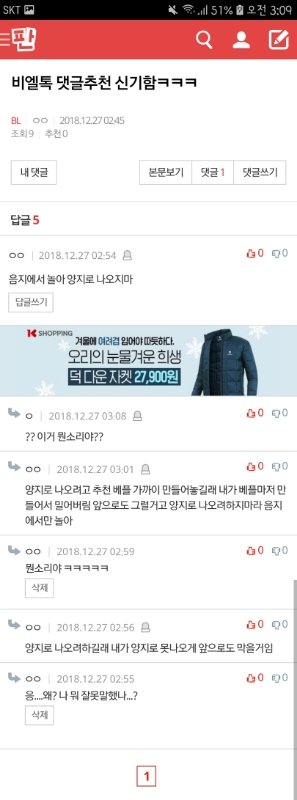 이게 내가 쓴 원문이고 밑에가 댓글인데 뭔말하는거야?ㅋㅋㅋ 이해가 안간다... 난 그냥 추천수 많아서 신기하다했을뿐이고 (나도 걍 벨톡에서 노는 사람중 한명임..오해할까봐)