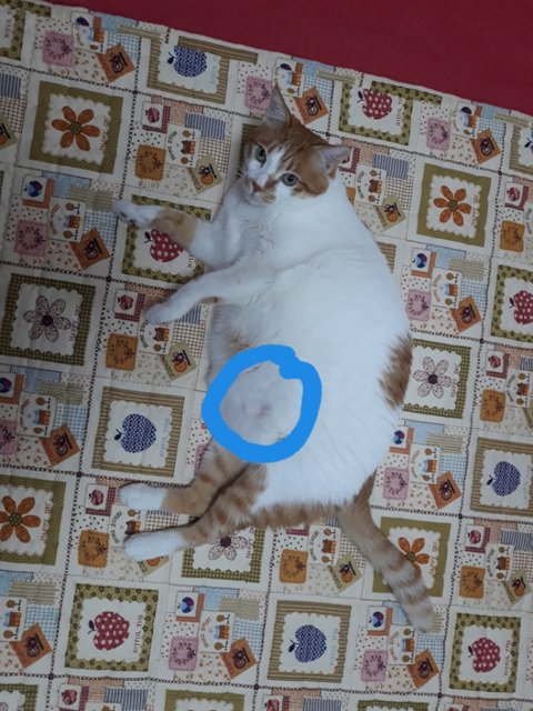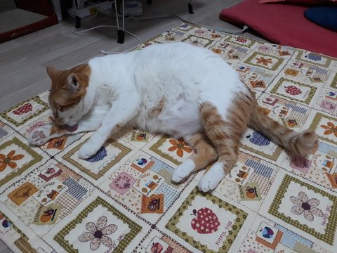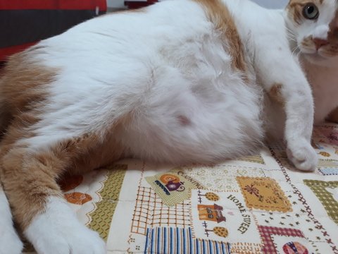 거대한 뱃살을 내밀며 그곳을 그루밍 할려다 집사에게 딱 걸렸음.