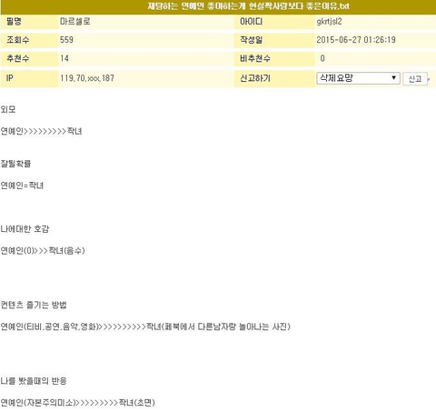 (내동생이름)이 (내동생본진) 좋아하는 이유 일케 보낸 거고 짤 내용은 이거야