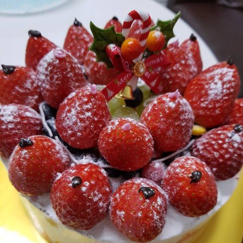 아주 야무지게 딸기 하나하나 올리고 슈가 파우더도 솔솔 뿌리고 데코까지 완벽쓰
