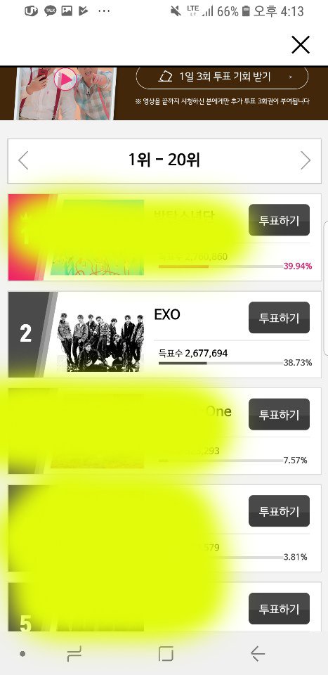 광고 보면 세표 더 할 수 있음 총 6표씩 ㅠㅠㅠㅠ