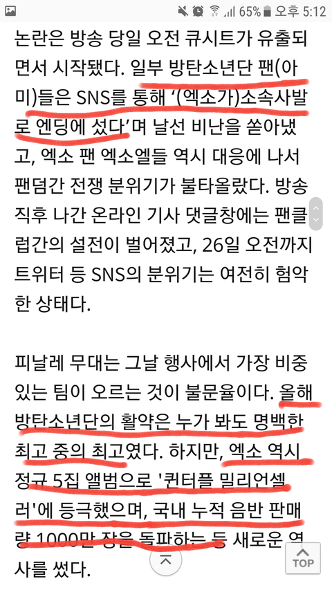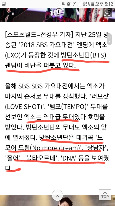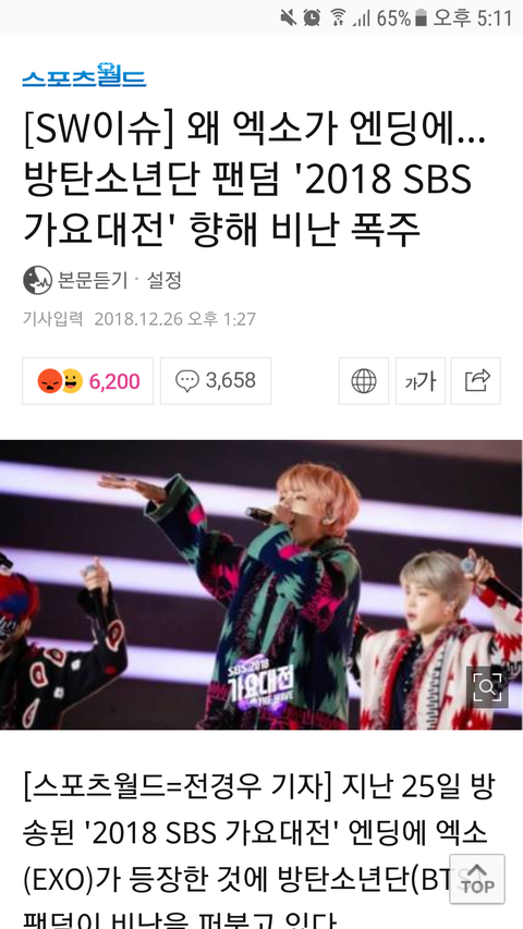 기사 제목부터 아주 ㅋㅋㅋㅋㅋㅋㅋ 아미들이 엑소 못잡아서 안달난 것처럼 적어놓더니 ㅋㅋㅋㅋㅋㅋㅋ