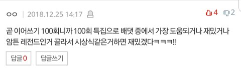 이어쓰기 100회특집 기억에 남는 댓글파티(?)하자