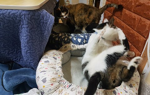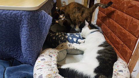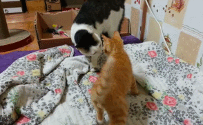 키이는 역시나 핥아주네요. 코우가 단골로 싸움을 걸지만 늘 훈훈하게 마무리 되는 두 고양이.
